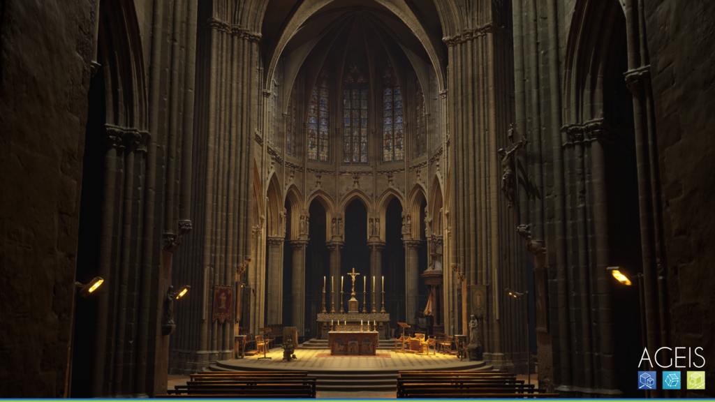 AGEIS offers 3D surveying, BIM modeling and immersion services, with the integration of models created in Unreal Engine. Our skills have enabled us to work on a wide range of projects, including heritage sites (Basilique d'Evron, Notre Dame de Paris...), various industries (factories, treatment centers...), and urban environments (Quartier de la Maladrerie in Aubervilliers).