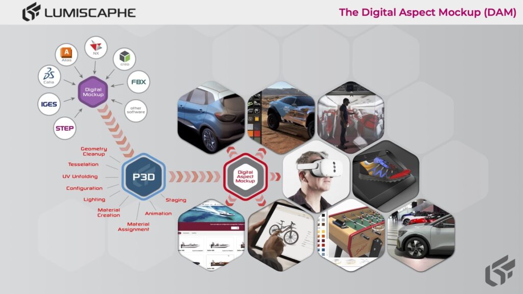 Lumiscaphe focuses on optimizing digital industrial processes through automation, customized process design and high-performance 3D software. Our solutions easily integrate 3D data and CAD tools into a 3D Digital Backbone that simplifies workflows for product visualization, design and marketing in industrial environments.