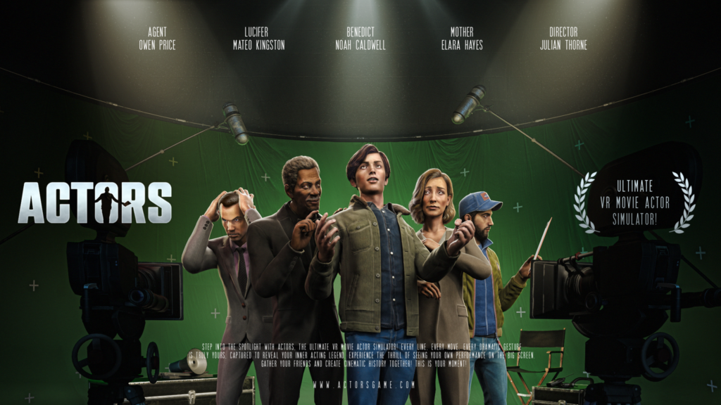 Actors is a virtual reality film actor simulator. It allows you to experience what it’s like to be on a movie set, immersing you in both the story of the film being shot and the drama behind the scenes. In the game, you perform the actual duties of a screen actor: reading the script, rehearsing with the director, and—most importantly—filming. You must master both vocal performance and stage movement. To wrap up, you get to review the daily rushes.